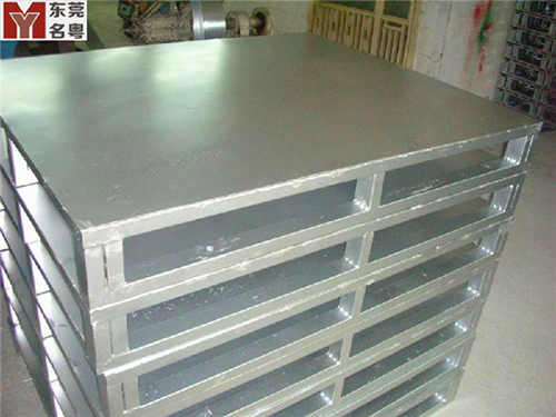 比较方便叉车四向进叉。还可以用小型方管和短管做支架来代替支腿。面板于之退焊接后先经人工打磨,在采用酸洗磷化或抛光机进行表面处理。